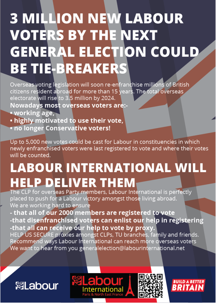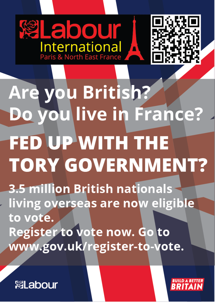 February 14, 2024February 14, 2024Labour International Paris & North East France Click here to vote in the next UK General Election as an Expat. https://postal-vote.service.gov.uk/are-you-registered-to-vote Share this: Click to share on X (Opens in new window) X Click to share on Facebook (Opens in new window) Facebook Like Loading... Related